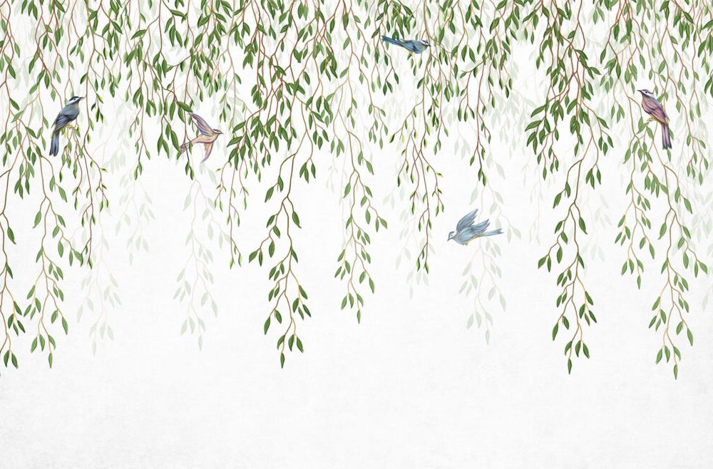 Hayalinizdeki huzurlu sığınağı yaratın! Evinizin duvarlarını doğanın dinginliğiyle buluşturan, zarif kuşların dalların arasında süzüldüğü büyülü bir dünyaya davetlisiniz. Bu duvar kağıdı ile yaşam alanlarınıza benzersiz bir dokunuş katın.