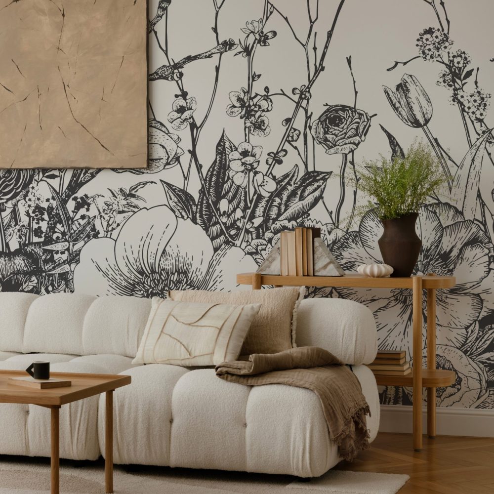 Siyah ve beyazın zamansız uyumuyla evinizde asil bir atmosfer yaratın. Bu duvar kağıdı, çiçek desenlerinin zarafetiyle mekanlarınıza benzersiz bir dokunuş katıyor. Hayalinizdeki yaşam alanlarına kavuşmanın şimdi tam zamanı!